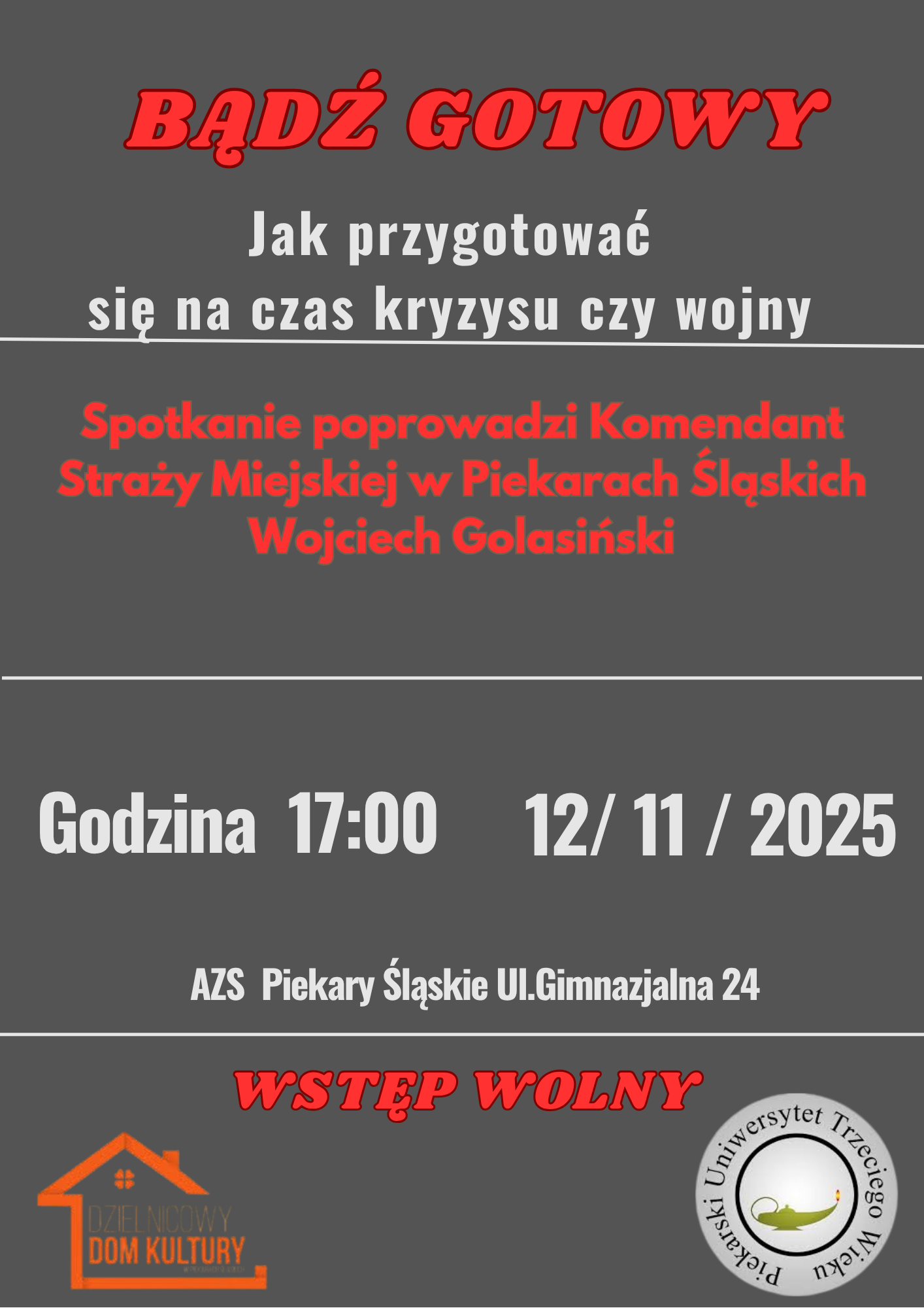 wykładzie w auli AZS. Jego tematyka dotyczyła przygotowania siebie i najbliższych na